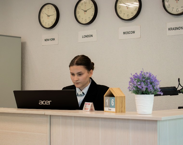Модуль 1: Организация и контроль текущей деятельности службы приема и размещения. Выполняют процедуру заселения гостя на иностранном языке с автоматизированной системой управления, а также процедуру выселения на русском языке.